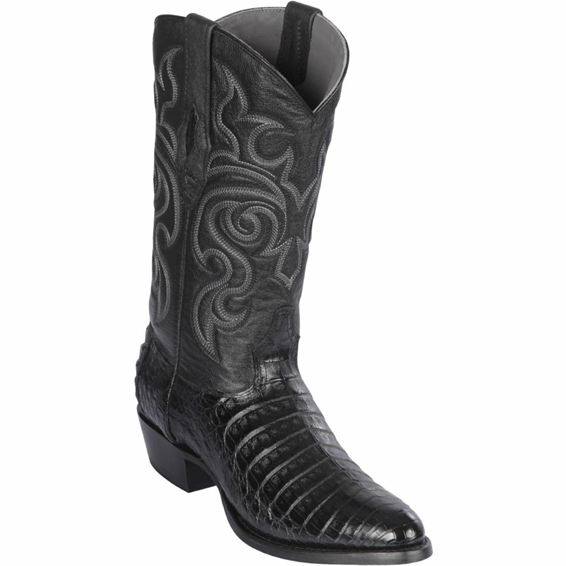 Mens black caiman belly western boots in a traditional r-toe profile from Los Altos Boots.