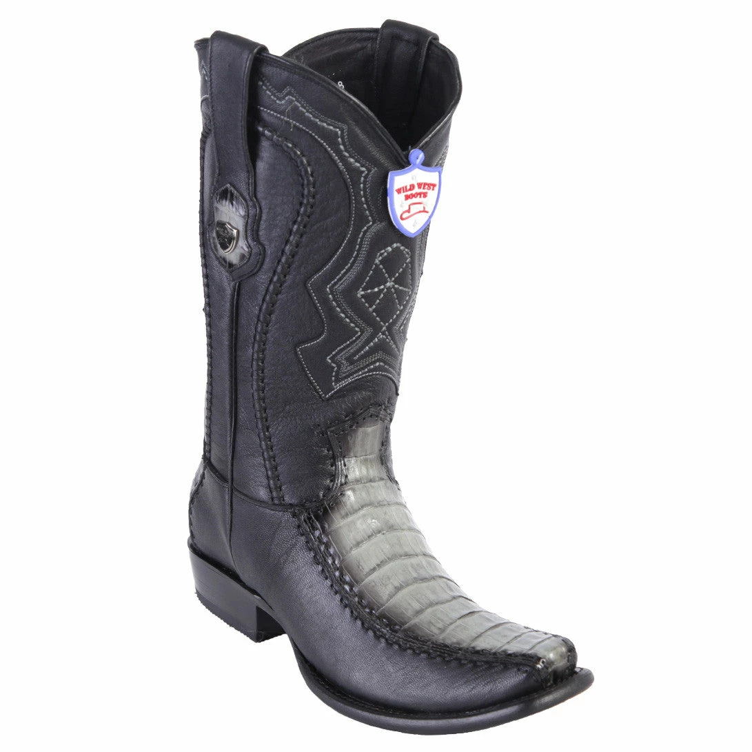 Expertly handcrafted cowboy boots feature an exotic caiman belly stitched leather foot.