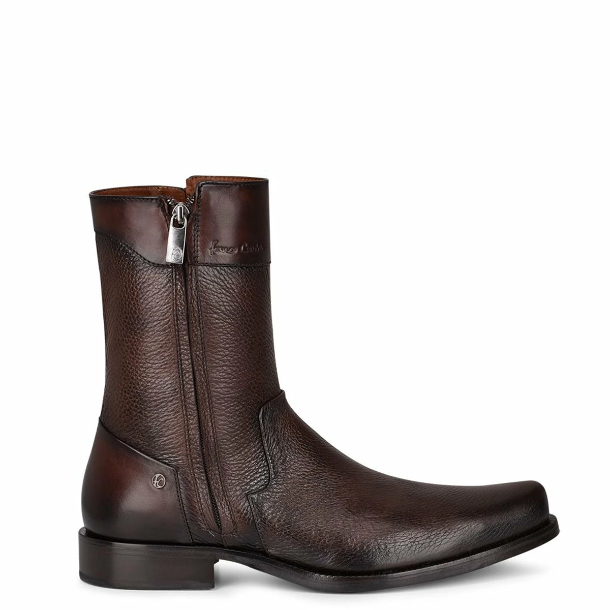 Crafted from genuine deerskin and bovine leather, with double sided zipper for easy wearability.