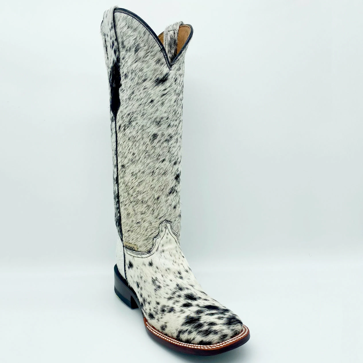 Women’s tall western boots made of genuine cowhide. Every boot has a unique pattern and color depending on hide.Â