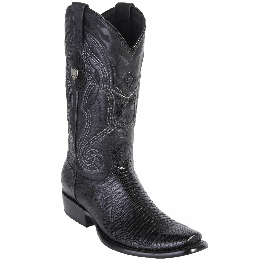 Expertly handcrafted cowboy boots feature an exotic lizard teju leather foot.