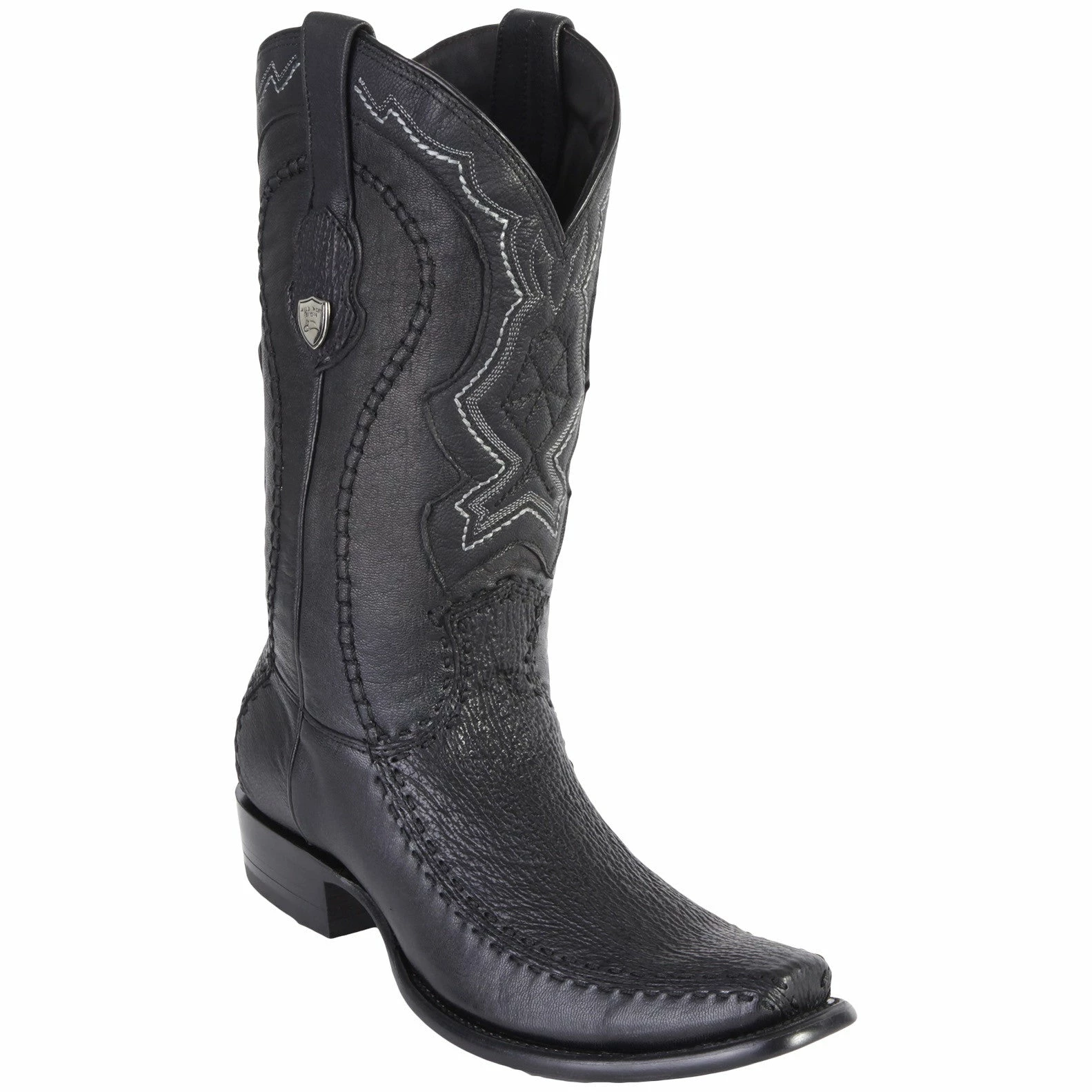 Expertly handcrafted boots featuring an exotic shark & stitched leather foot.