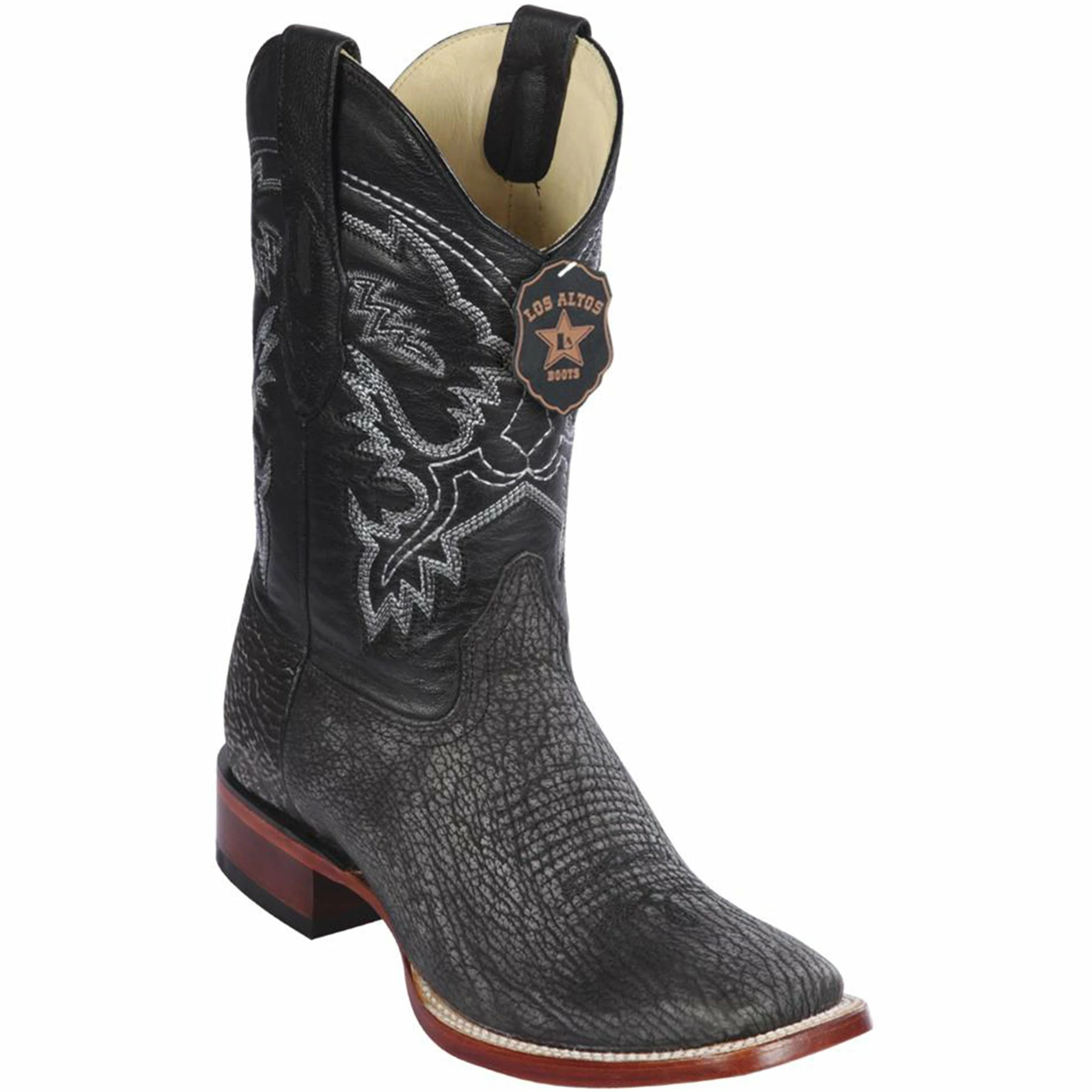 Crafted from premium sharkskin leather, these Mens Los Altos Boots feature a striking wide square toe design.